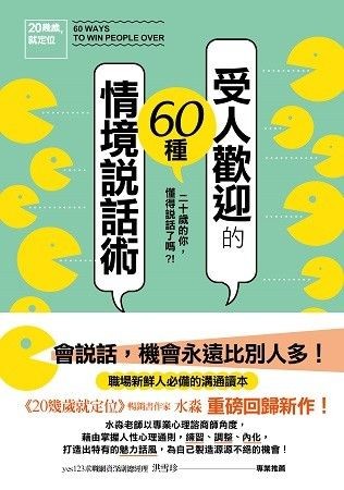暢銷書作家水淼依據個人的親身經歷,以專業心理諮商師角度,暖心書寫成60情境說話術,幫助職場新鮮人快速融入複雜地人際互動中,找到自己的定位與自信,成為受歡迎的人。