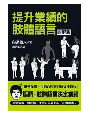 決定銷售結果的不是談話內容,而是銷售員的語調、外表與肢體語言!本書根據最新的研究數據,以淺顯易懂的說明配合幽默生動的插圖,分從「看穿對方的心理戰術」與「誘導對方的心理戰術」兩個方向,傳授銷售不敗秘訣!例如:「以高於對方的視線來展現氣魄。」「當客戶說笑話時要一邊誇張地笑,一邊輕拍他的手腕。」「以稍微向前傾的姿勢面對客戶。」……等48個的交涉技巧,保證一看就懂。想要業績蒸蒸日上,絕對要把握這本「超實用書」!